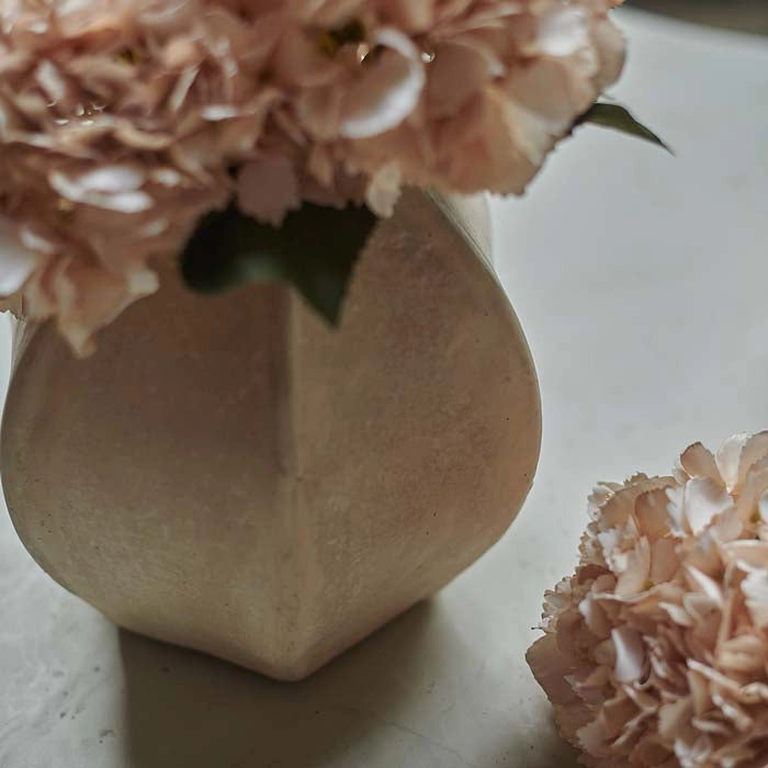 Beautifully blending together a love of materiality and chic design, the Arcadia Vase is a charming piece. Made from paper mache in an ultra smooth finish, the natural irregularities and dimples of each piece impart a little bit of uniqueness onto every vessel. Its sculptural shape and oat hue make it the perfect accent piece to liven up any room especially with the addition of a few faux botanicals.