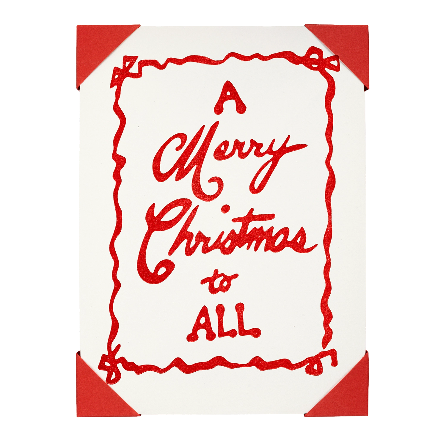 Having fun with playful slogans is one of our favorite things to do at the Archivist studio! Our 'Merry Christmas to All!' card bursting in bright red colors, making it a festive treat for the eyes. Inspired by the artwork of American textile designer Carl Tait, making a joyful design. Spread the cheer with a card that’s as merry as the season itself.