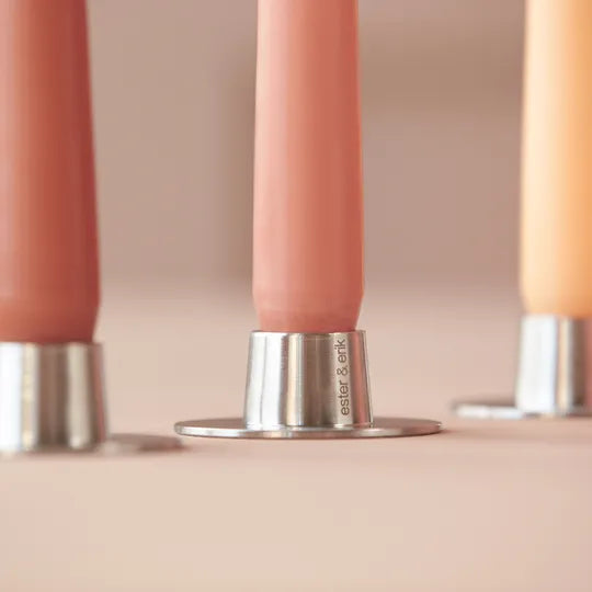 Designed by Erik for his and Ester’s silver wedding anniversary, these classic, stylish candle holder has since become one of our best-selling accessories. Size medium holds both taper candles and cylindrical candles.