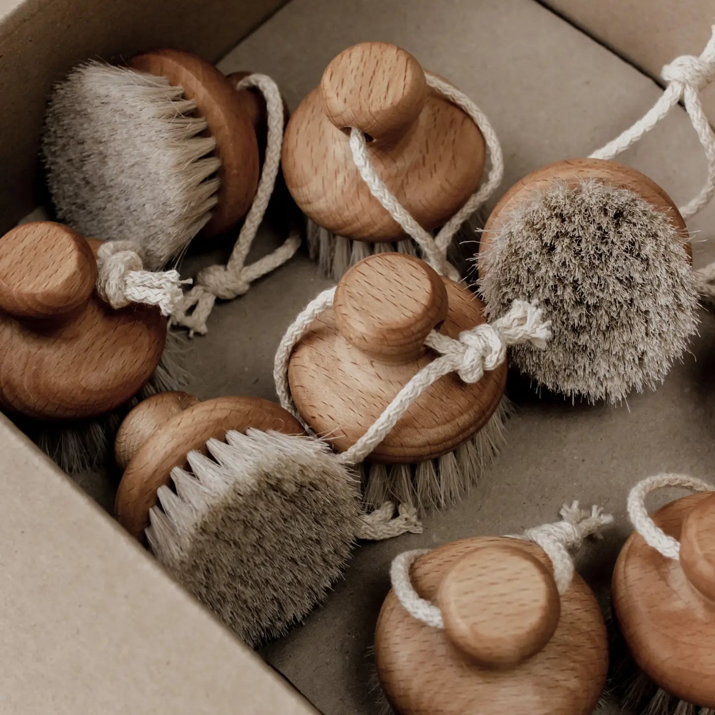 The mechanical action of dry brushing is wonderful for exfoliating dry winter skin. It also helps detoxify by increasing blood circulation and promoting lymph flow/drainage. Dry brushing unclogs pores in the exfoliation process. It also stimulates your nervous system, which can make you feel invigorated afterward. Made from locally sourced beech wood, naturally oiled, and FSC® certified, this brush features bristles made from natural, sustainably sourced horse-mane hair and a cotton string. We ensure that all materials are selected with a commitment to ethical and cruelty-free practices.