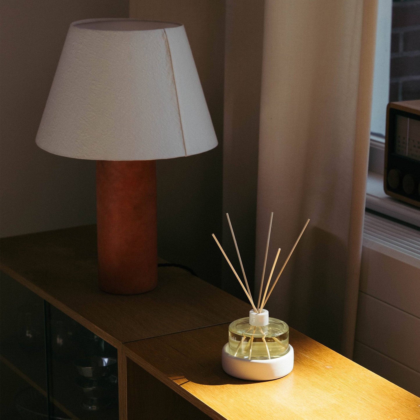 A captivating mixture of crisp and aromatic notes of rosemary and laurel nobilis, combined with the subtle spice of pink pepper. Our Reed Diffuser is thoughtfully designed to fill any room with refined scents. This safe formula, made in the Netherlands, is held within a unique glass and ceramic holder crafted in Portugal.