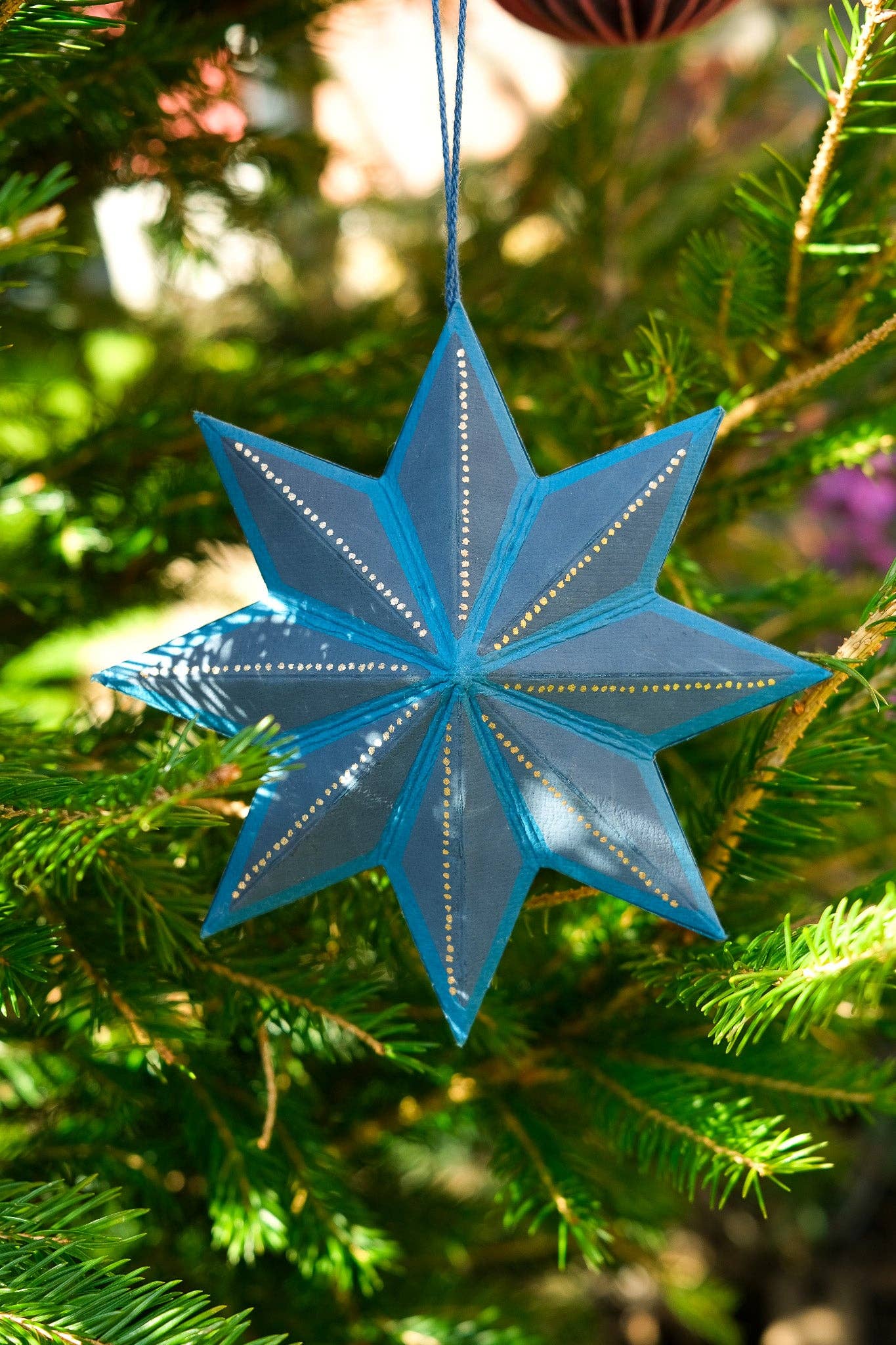 Screen printed board ornament, sustainably made from 100% recycled paper.