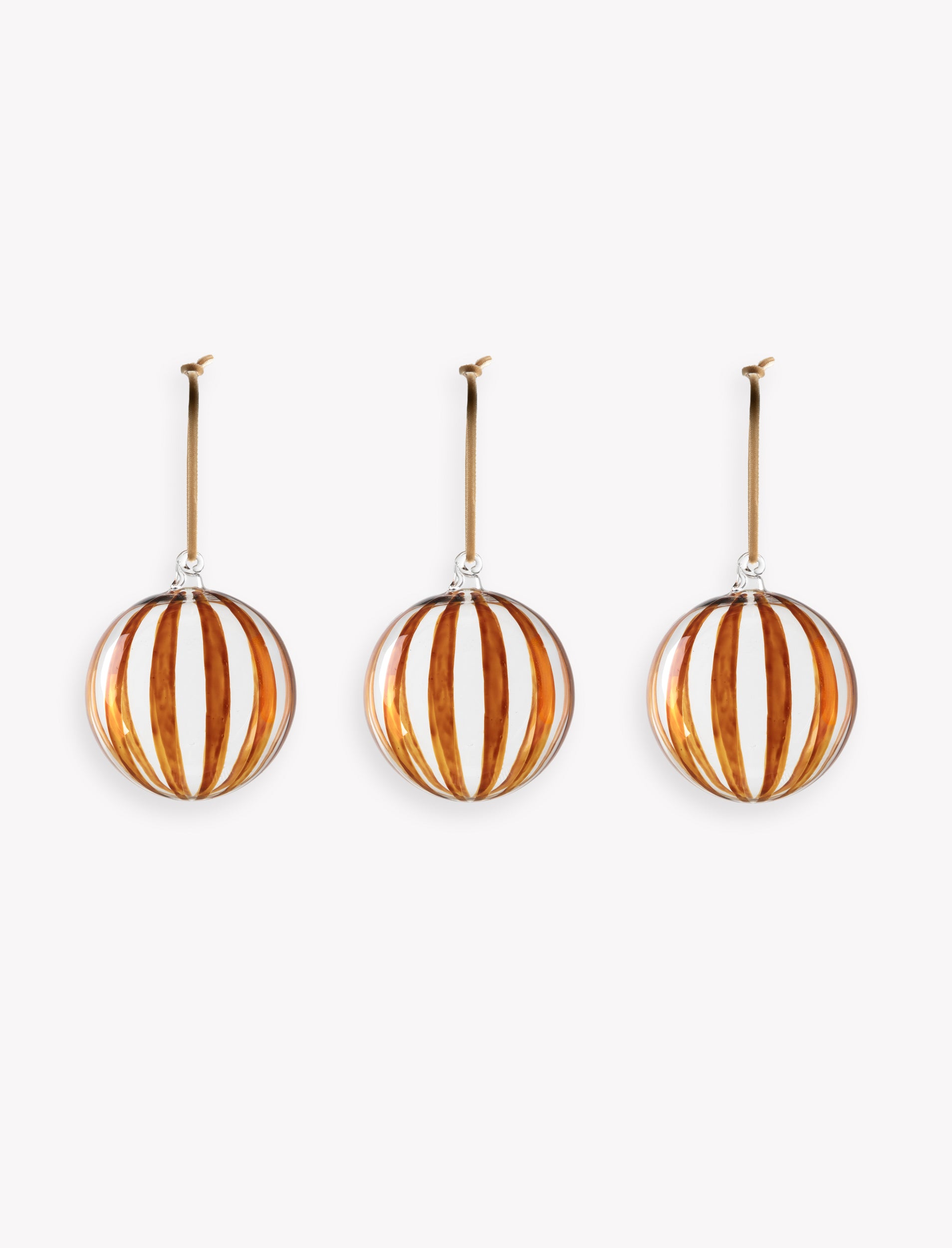 Sure to become your favourite Christmas decorations year after year, the Purton Striped Christmas Baubles feature stylish hand-painted cinnamon stripes on beautifully crafted clear glass. Hang them on waiting branches with their luxurious cinnamon-coloured velvet ribbons, which are carefully threaded through a moulded glass loop. Complete the look by styling the Christmas tree with the matching Berry version for a colourful finish.