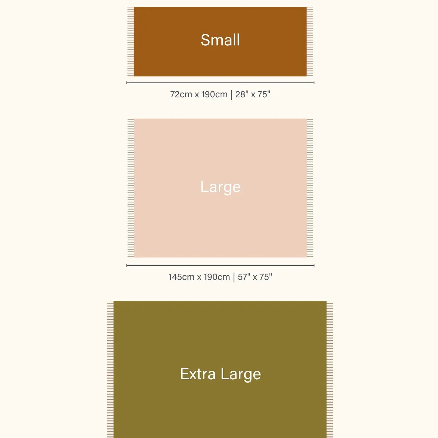 Fibre | 70% recycled wool, 30% mixed fibres saved from landfill Size | 57" x 75" / 145cm x 190cm, including fringing* Wool Source | Recycled Woven In | India Care | Machine wash on wool cycle. Lay Flat to Dry.