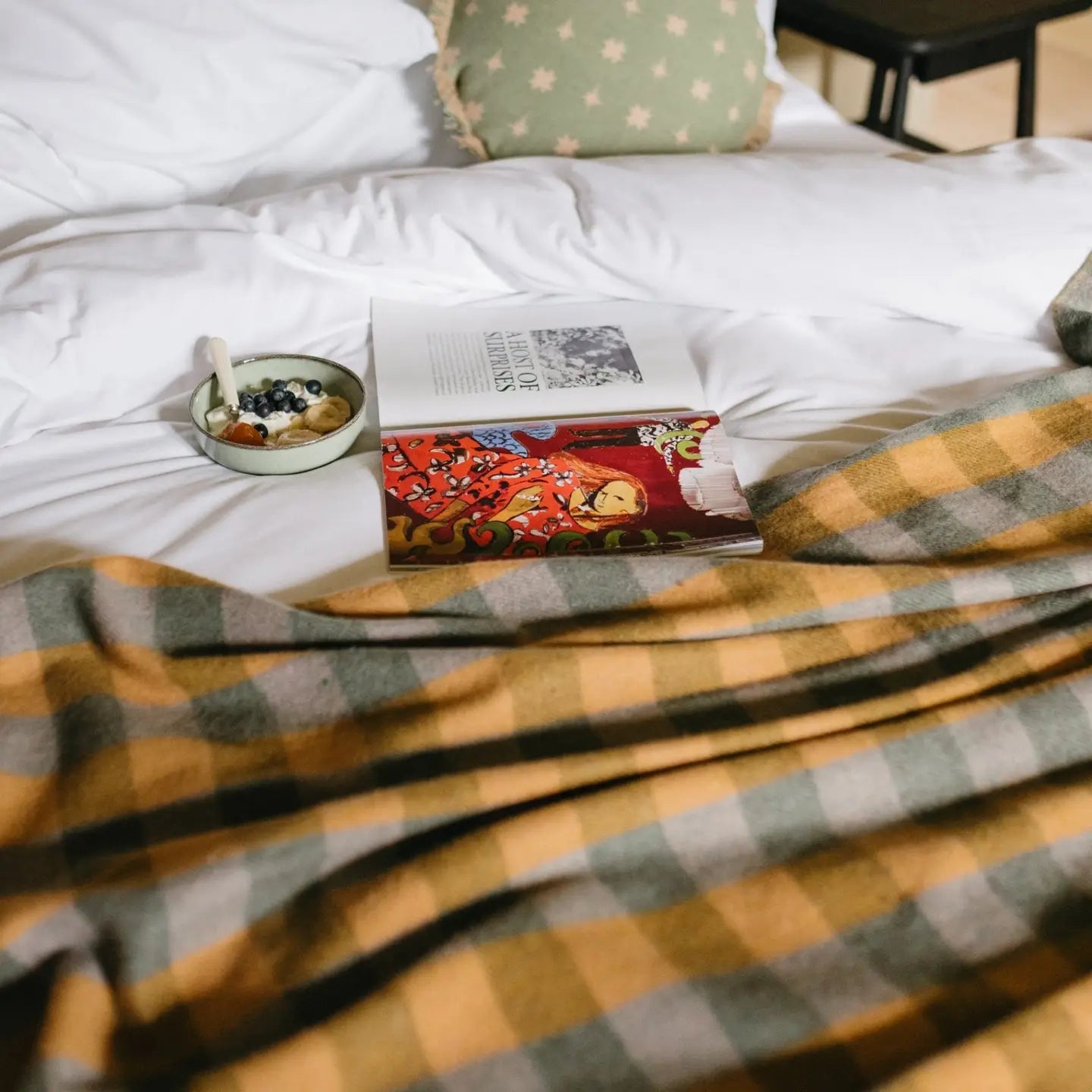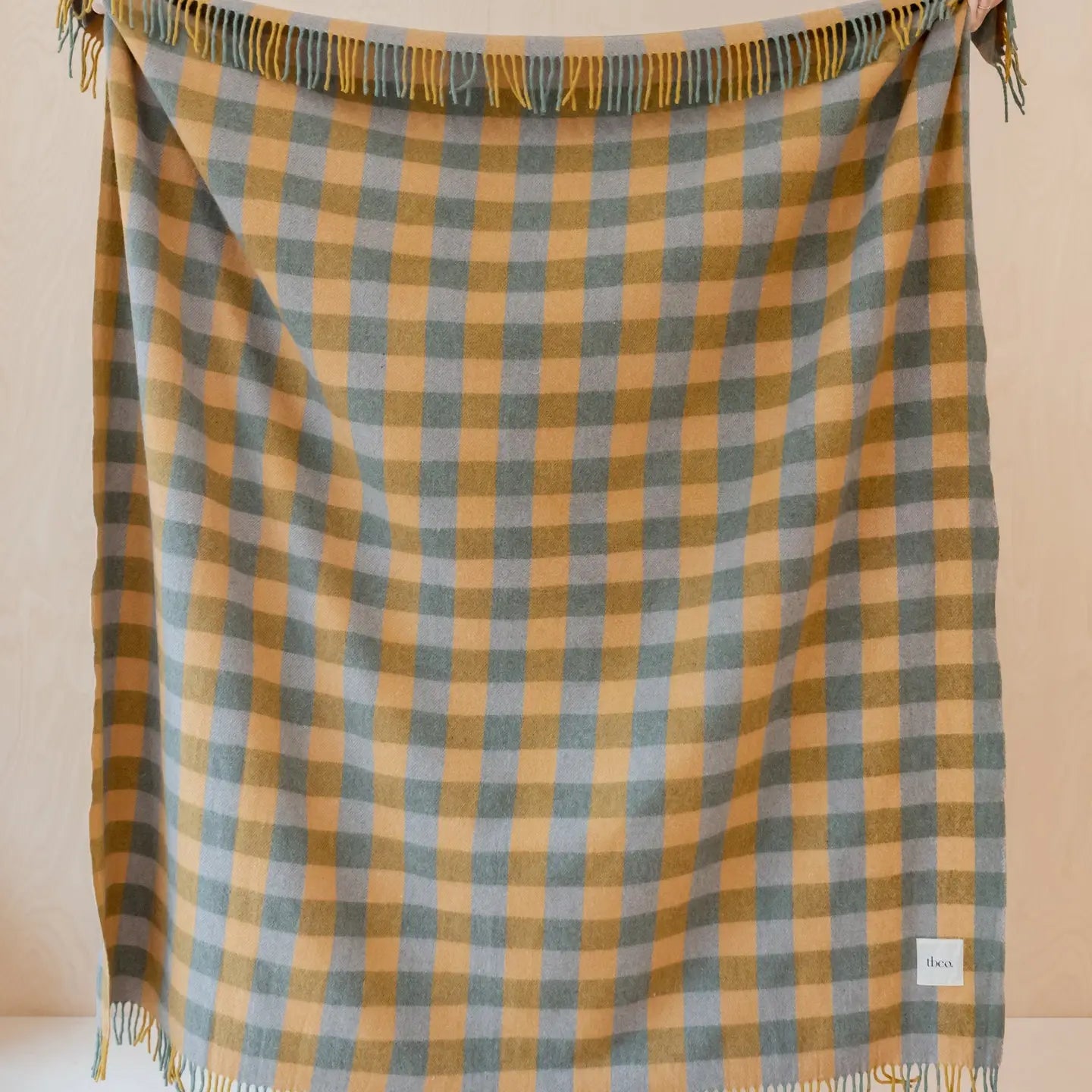This classic gingham blanket, woven in rich shades of green, mustard and pink, is an invitation to unwind. Its thick weight, fringed edges and herringbone weave add beautiful texture and interest to your space. Best of all, it turns preloved into reloved. It's woven from 70% recycled wool and 30% mixed recycled fibres. On average, each TBCo recycled wool blanket saves six garments from landfill.